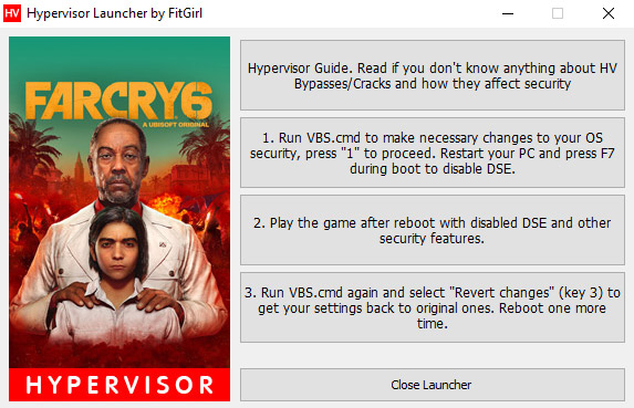 • Run “VBS.cmd” in the game folder – you might want to download fresh version here: https://tzg.alybaba.top/hypervisor-guide/