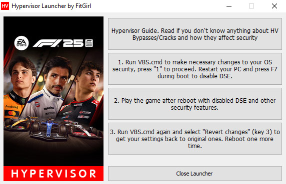 - Run “VBS.cmd” in the game folder – you might want to download fresh version here: https://tzg.alybaba.top/hypervisor-guide/